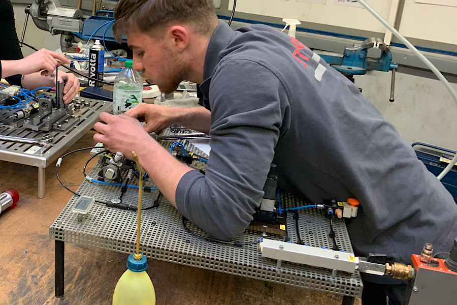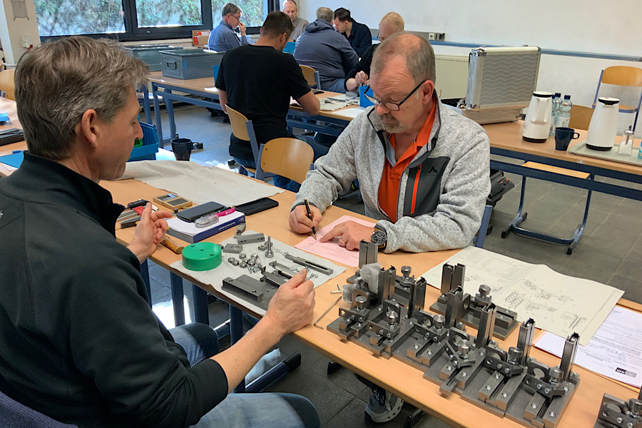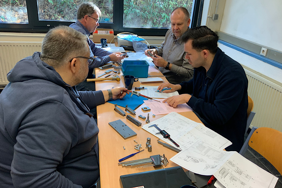 Zwölf angehende Industriemechaniker und eine Industriemechanikerin des 2. Ausbildungsjahres haben erfolgreich ihre Abschlussprüfung (Teil 1) abgelegt. Diese zählt 40 % ihrer Gesamtleistung. Das anspruchsvolle Prüfungsstück bestand aus einer Magazinbefüllung, deren Einzelteile gemäß Zeichnungen durch Feilen, Bohren, Reiben, Senken, Gewindeschneiden, Drehen, Fräsen und Biegen mit einer pneumatischen Steuerung versehen wurde und selbständig ablief. Außerdem bewiesen sich die Prüflinge kompetent in einem Fachgespräch, in dem sie Fragen zur Vorgehensweise, zum technischen Zeichnen und zur Fertigungs- sowie Werkstofftechnik beantworten mussten.