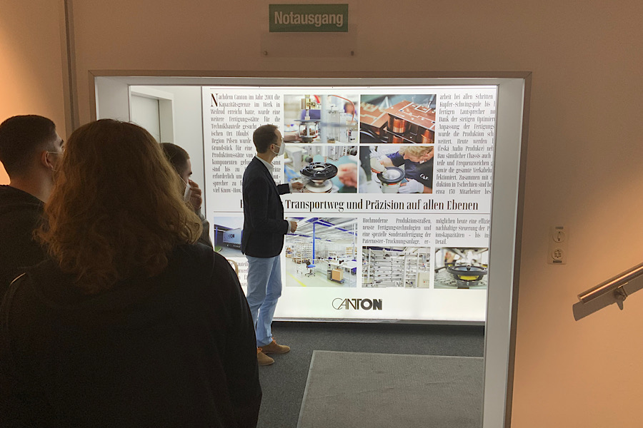 Des Weiteren bekamen wir erklärt, dass CANTON einen zweiten Standort in Tschechien besitzt, in dem sie alle Einzelteile, wie z.B. die Frequenzweichen, für ihre Lautsprecher selbst herstellen.
