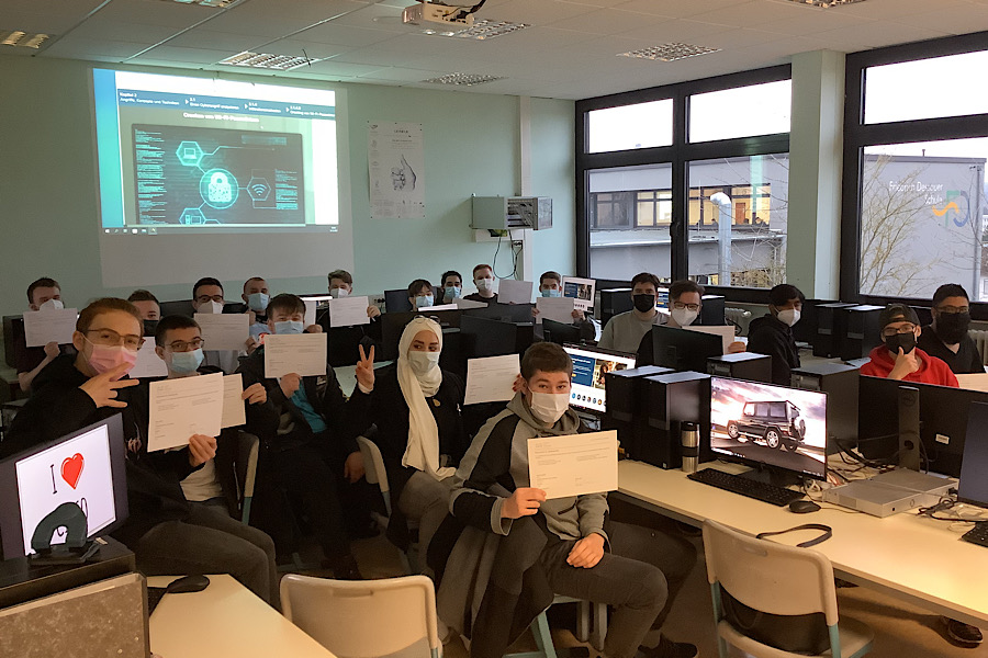Cybersicherheit ist gerade in der heutigen vernetzten Welt, in der es mehr Geräte als Menschen gibt, enorm wichtig, aber auch besonders schwierig. Immer wieder wird in den Medien von Cyber-Angriffen berichtet. Integrität, Vertraulichkeit und Verfügbarkeit von Daten sicherstellen, verschiedene Arten von Malware und Internetangriffen erkennen, Schutzstrategien der Unternehmen gegen Cyberkriminalität erfassen und umsetzen – die angehenden IT-Assistenteninnen und Assistenten der Klasse BFI 11 haben sich drei Wochen intensiv mit dem Thema Cybersecurity beschäftigt und den Abschlusstest erfolgreich bestanden. Die FDS als Cisco-Networking Academy vermittelt ihren Schülerinnen und Schülern mit Hilfe der kostenlosen, aber qualitativ hochwertigen Cisco-Lernmaterialien praxisnah digitale Schlüsselkompetenzen von der IT-Grundausbildung bis zum Expertenwissen. Das Bild zeigt die Übergabe der Cisco-Zertifikate.