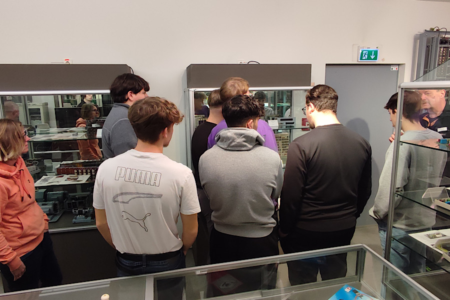 Die Besichtigung startete im firmeninternen Museum mit einer kleinen Zeitreise zum Telefonbau im Jahre 1970.