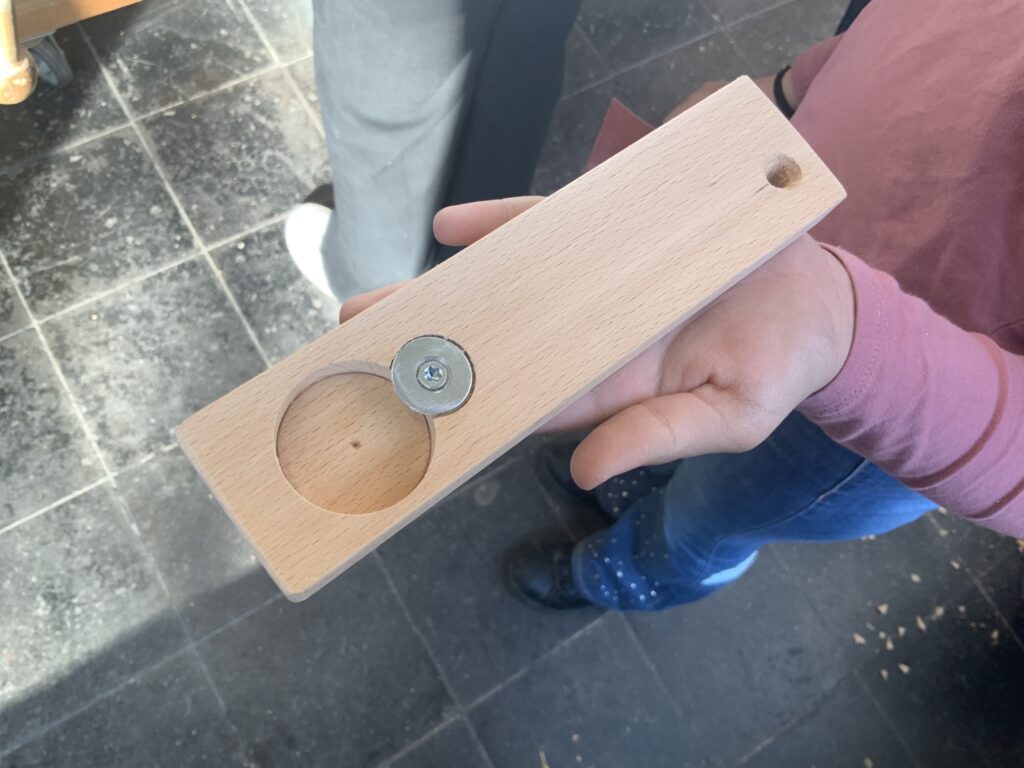 In der Holzwerkstatt bauten die Schülerinnen mit Hilfe von Holz, Bohrmaschine, Schleifpapier, Schrauben und Unterlegscheiben einen praktischen Flaschenöffner.