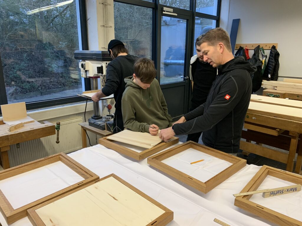 In das Projekt waren sowohl die BerufsfachschulklasseHolztechnik als auch die Tischlerklassen eingebunden. Während die Tischlerklassen für die Fertigung der Rahmen zuständig waren, kümmerte sich die Berufsfachschulklasse um die Gestaltung und Umsetzung der Moosbilder.