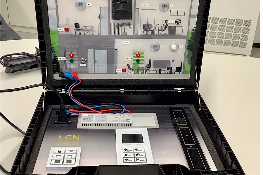 Zu Beginn des Projekts lag der Fokus auf dem Kennenlernen des Systems sowie der gründlichen Projektplanung. Die Schüler mussten sich zunächst mit der „LCN-Pro Software“ vertraut machen und die verschiedenen Einsatzmöglichkeiten erkunden. Ein weiterer Schwerpunkt war das Verständnis der im Koffer enthaltenen und im System verwendeten Bauteile.