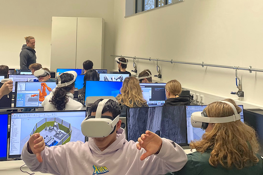 Durch die Investition in 20 VR-Brillen konnten die Lernbedingungen nun optimiert werden. Dank der neuen Virtual-Reality-Technologie können jetzt alle Lernendengleichzeitig an einem virtuellen Roboter arbeiten. Der Unterricht lässt sich dadurch interaktiver und flexibler gestalten. Die Schülerinnen und Schüler können ihre Programmierkenntnisse in einer realitätsnahen Umgebung testen und erweitern, ohne auf physische Ressourcen angewiesen zu sein. Die VR-Simulation ermöglicht es, den Roboter in Aktion zu sehen und die programmierten Abläufe auf ihre Genauigkeit zu überprüfen – alles, ohne dabei das echte Gerät zu blockieren.